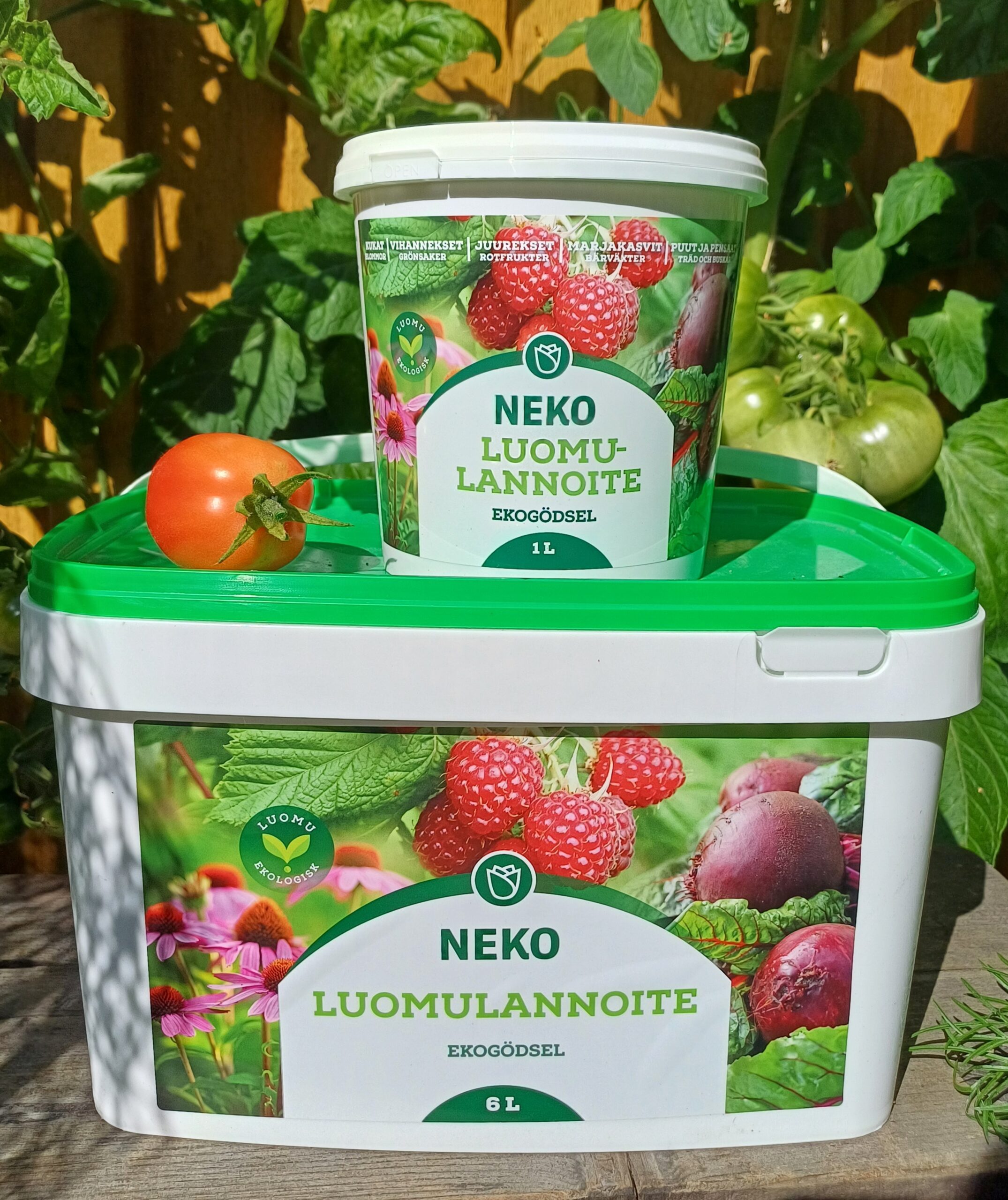Neko Luomulannoite on pitkävaikutteinen, orgaaninen yleislannoite. Se parantaa kasvualustan ravinteikkuutta ja kuohkeutta, edistää kasvua ja kasvuston hyvinvointia sekä lisää maaperän hyödyllisten mikrobien toimintaa. Luonnonmukaiseen viljelyyn soveltuva kierrätyslannoite.